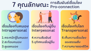 - Interpersonal Connection: การสร้างความสัมพันธ์ที่ดีกับผู้อื่น เห็นความเชื่อมโยงและเกื้อกูลกันในสังคม