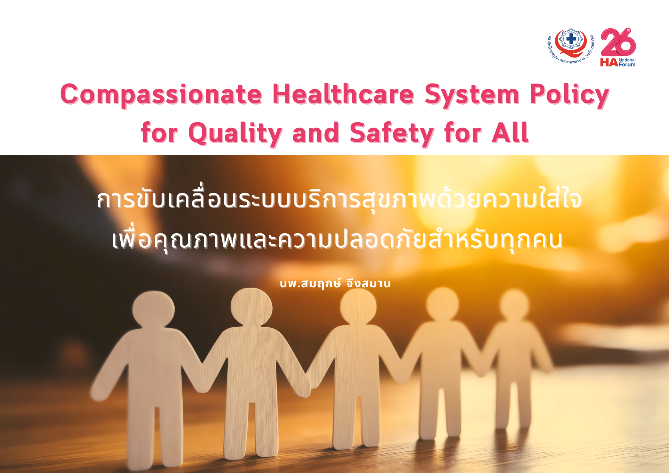 ในเวทีปาฐกถาพิเศษเรื่อง “Compassionate Healthcare System Policy for Quality and Safety for All: การขับเคลื่อนระบบบริการสุขภาพด้วยความใส่ใจเพื่อคุณภาพและความปลอดภัยสำหรับทุกคน” นพ.สมฤกษ์ จึงสมาน ปลัดกระทรวงสาธารณสุข ได้ชวนผู้เข้าร่วมประชุมมองระบบสุขภาพไทยอย่างตรงไปตรงมา ว่าเรากำลังอยู่ในช่วงเวลาที่ไม่อาจทำงานแบบเดิมได้อีกต่อไป หากยังต้องการรักษาทั้งคุณภาพ ความปลอดภัย และความยั่งยืนของระบบบริการสุขภาพไว้ให้ได้พร้อมกัน